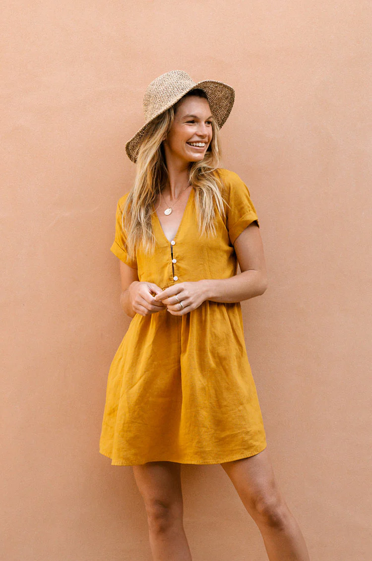 The perfect all-round dress for your sunchasing adventures! This cute babydoll dress with side pockets is our absolute bestseller, you will live in it! Crafted from the softest linen and designed in a flowy cut, it keeps you cool even in hot climates.